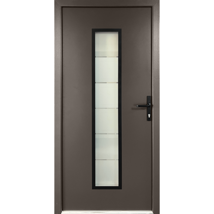 Usa are o structura robusta, realizata din profil PVC cu armatura metalica interioara, ceea ce ofera stabilitate si rezistenta pe termen lung. Foaia de usa este placata pe ambele fete cu tabla de otel galvanizat de 0,5 mm grosime, oferind protectie excelenta impotriva coroziunii, impactului mecanic si factorilor de mediu precum umiditatea, inghetul sau razele UV. Acest tip de constructie asigura durabilitate si rezistenta in timp, fara deformari, exfolieri sau decolorari. Este solutia ideala pentru cei care cauta o usa de intrare durabila, sigura si usor de intretinut.