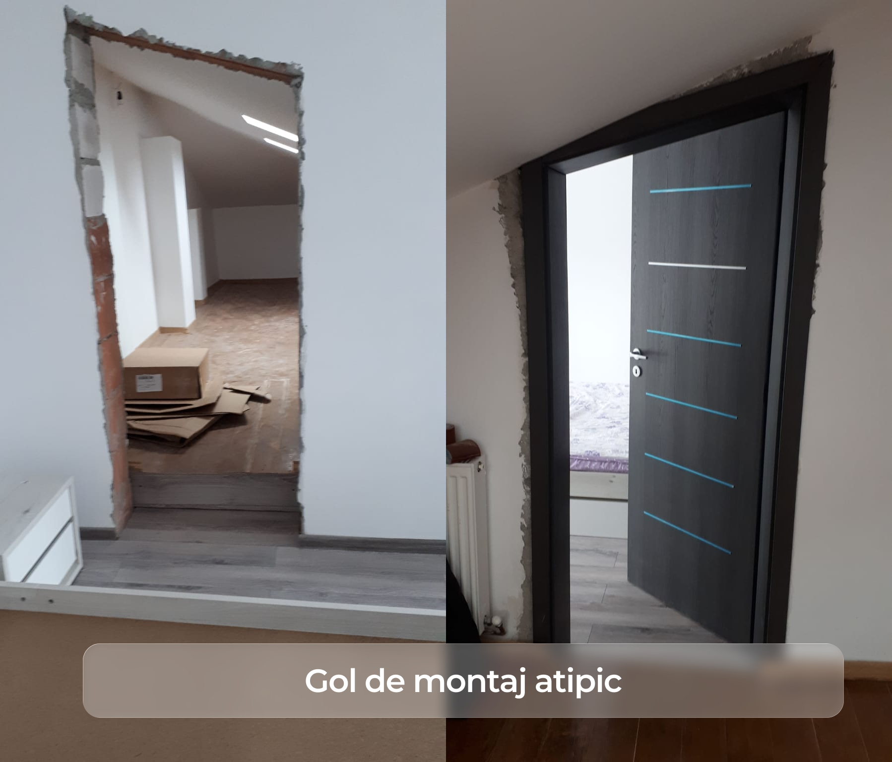 Exemplu real: Mihai, proprietar al unei case vechi în zona Ultracentral din Cluj, s-a confruntat cu o provocare comună caselor construite înainte de 1990: absolut nicio deschidere nu era standard. Living-ul avea o deschidere de 95cm lățime și 195cm înălțime, dormitorul principal 87cm × 198cm, baia 73cm × 192cm. Plus, găurile pentru balamale erau în poziții neobișnuite pe tocul vechi.