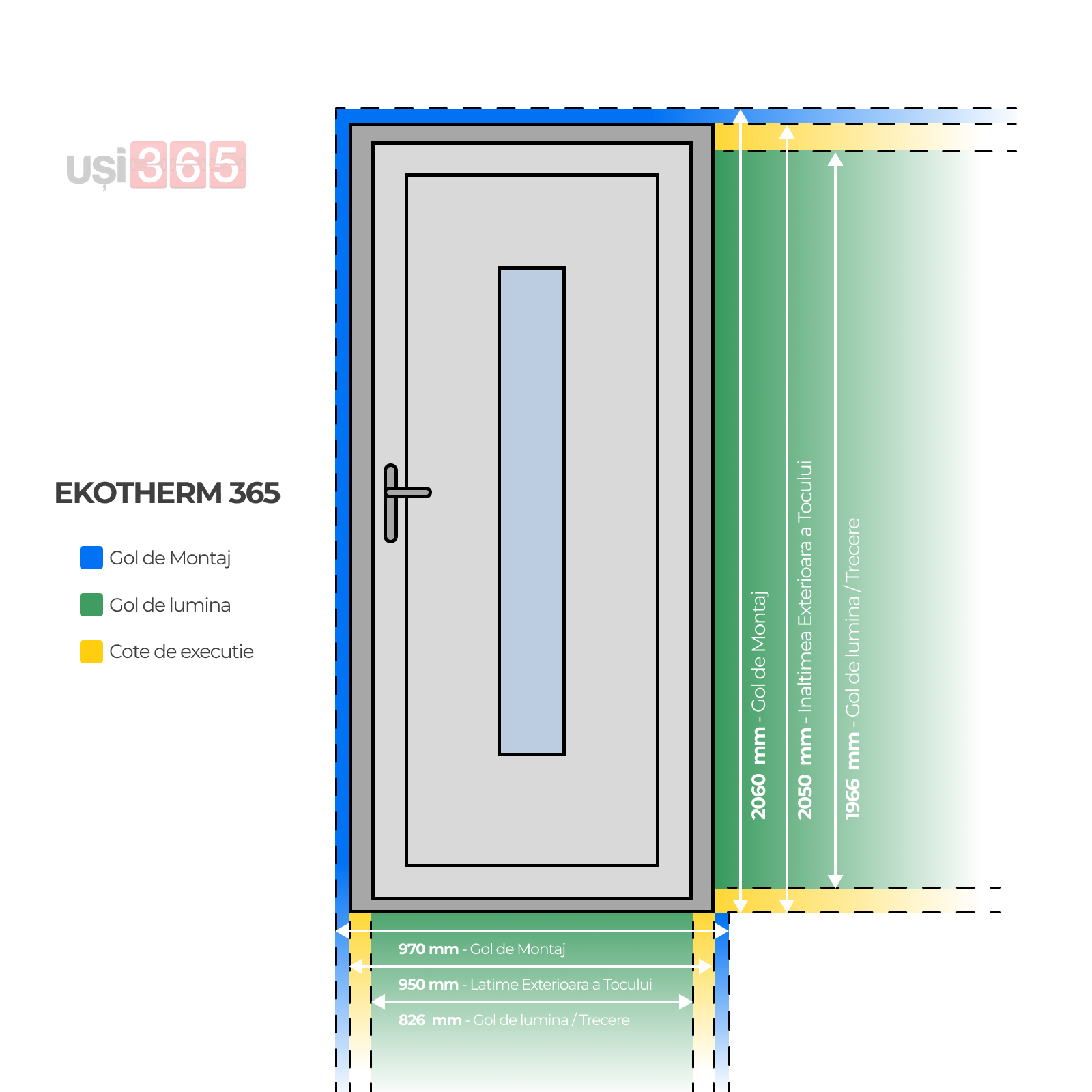 Eko-Therm365 este o ușă de intrare pentru exterior concepută să ofere echilibrul perfect între eficiență energetică, siguranță sporită și design durabil. Este soluția ideală pentru case moderne sau renovate, în care confortul termic, protecția locuinței și aspectul estetic sunt esențiale.