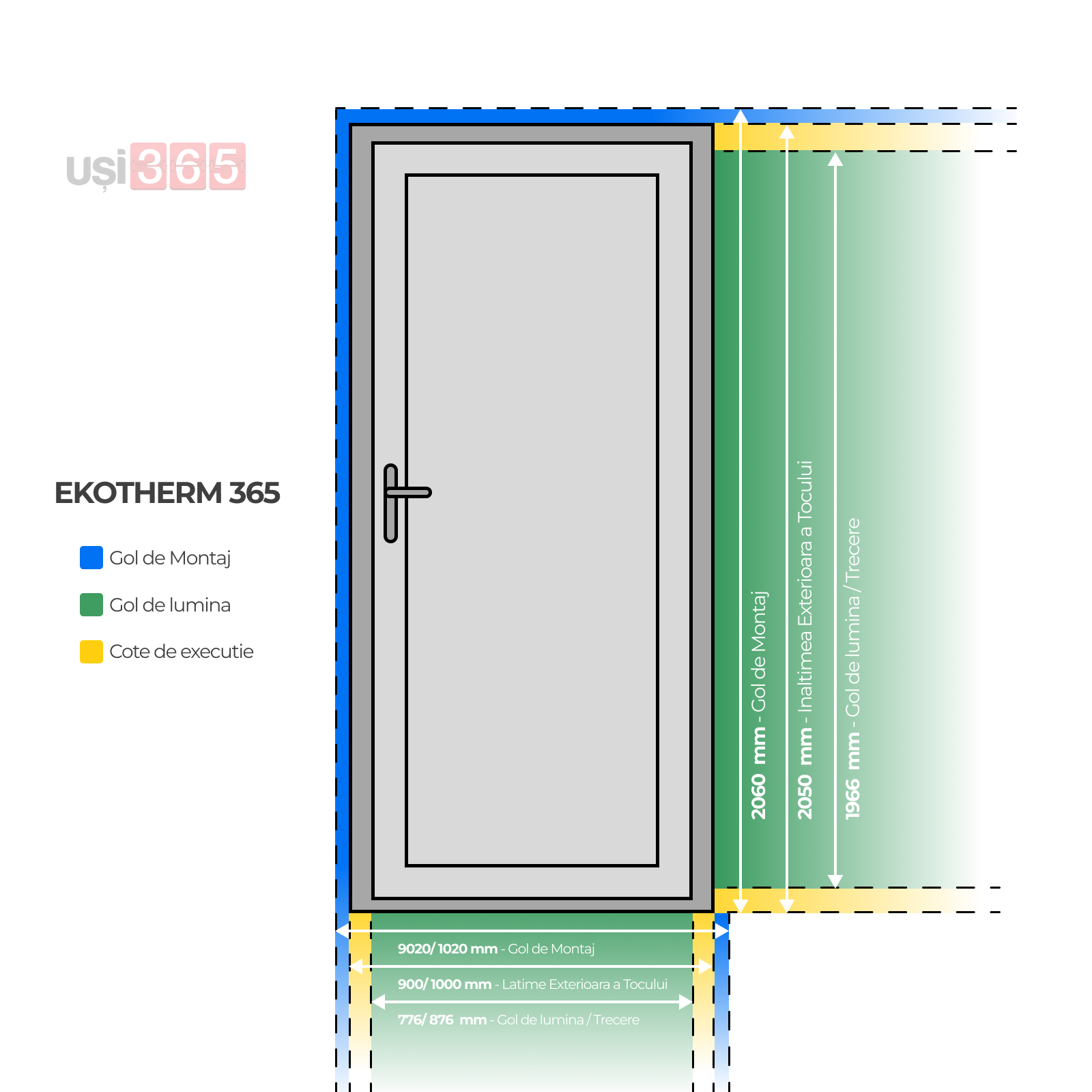 Eko-Therm365 este o ușă de intrare pentru exterior concepută să ofere echilibrul perfect între eficiență energetică, siguranță sporită și design durabil. Este soluția ideală pentru case moderne sau renovate, în care confortul termic, protecția locuinței și aspectul estetic sunt esențiale.