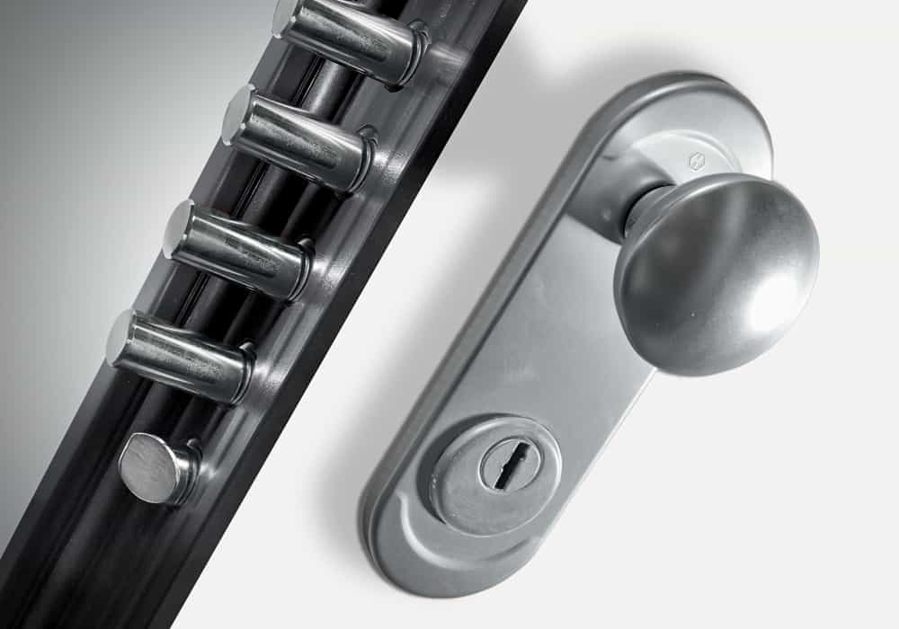 1- Bolt de inchidere suplimentar mobil, plasat strategic - Fiecare punct cheie al usii este securizat de bolturi fixe sau mobile.