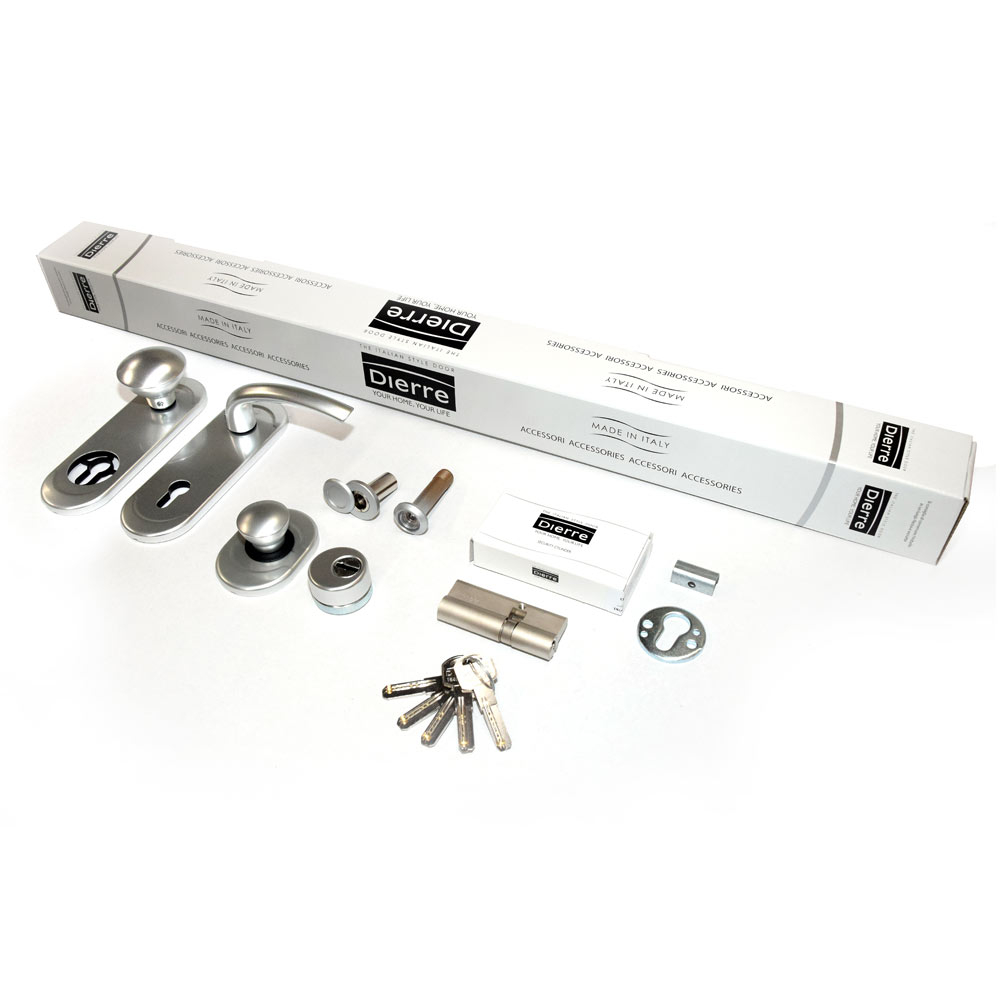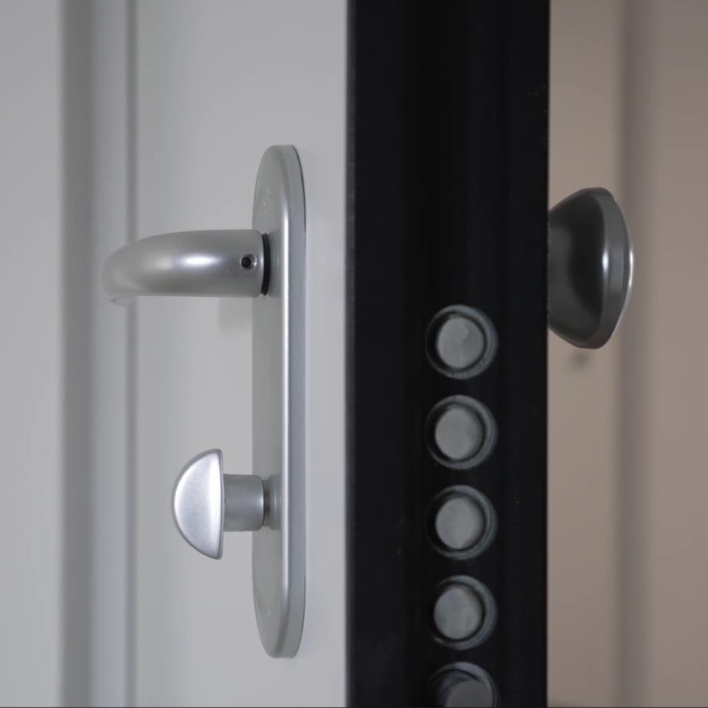 3- Maner Premium cu buton mobil la exterior si maner cu fluture la interior - Broasca antiefractie cu 4 bolturi mobile - Securitate maxima.