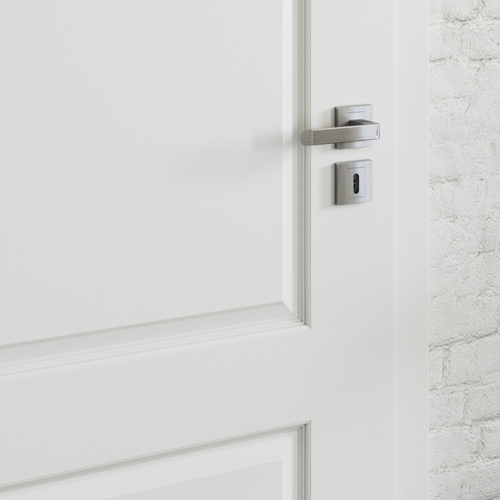 Broască: Ușa include o broască standard cu cheie simplă sau mecanism de blocare pentru băi. De asemenea, este disponibilă o broască magnetică în variante de finisaj negru, alb, auriu sau oțel inoxidabil, adaptându-se la orice stil decorativ.