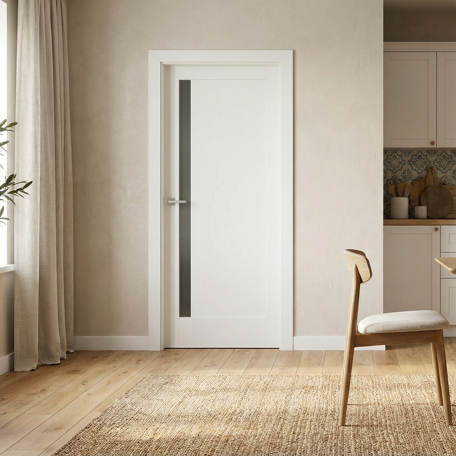 - Frezajele decorative în unghi de 45° adaugă dinamism și profunzime, transformând această ușă de interior Porta într-o piesă centrală a designului modern.