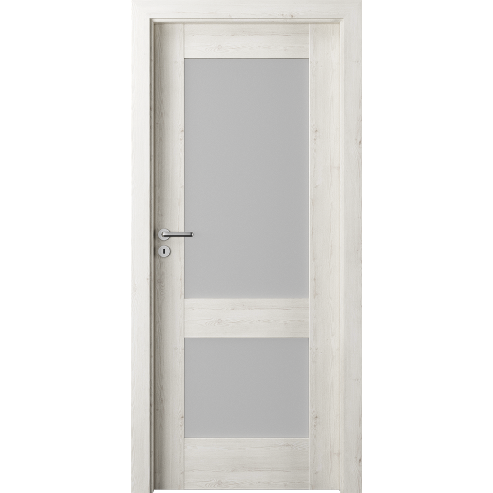 Construcția ușii PORTA VERTE PREMIUM Grupa C este realizată cu atenție la detalii, combinând traverse orizontale și panouri sau sticlă mată de 6 mm grosime, confecționată din sticlă securizată. Aceasta oferă nu doar un aspect sofisticat, dar și durabilitate și siguranță.