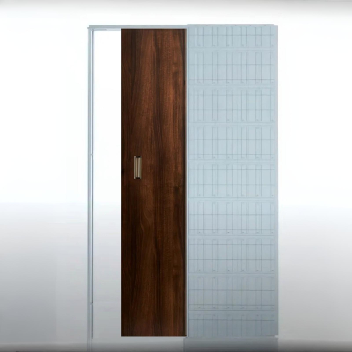 Kitul de glisare incorporat se monteaza in pereti de rigips (grosime minima de perete de 125mm) si este disponibil pentru urmatoarele dimensiuni ale golului de trecere:600/700/800/900x2000mm.