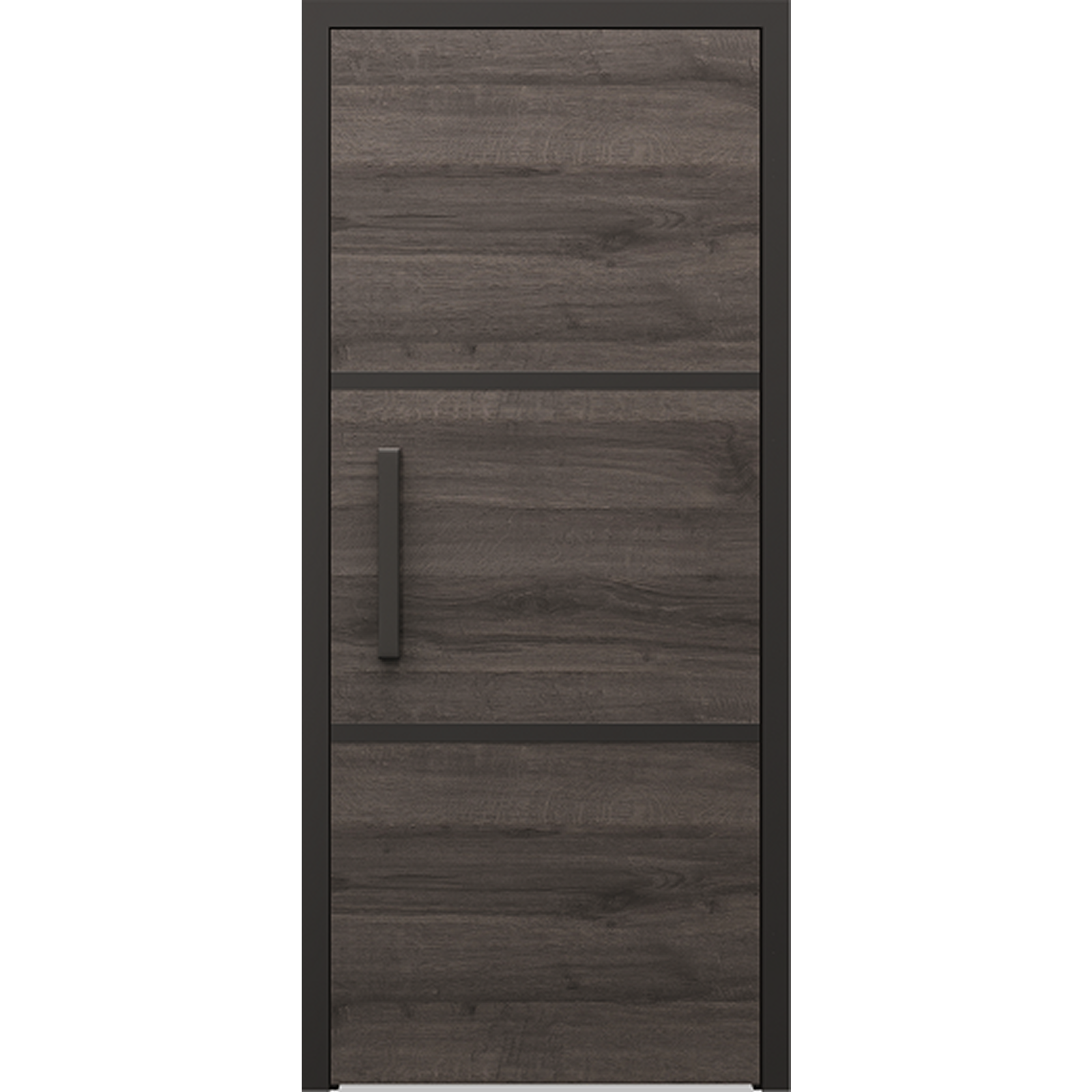 Ușa de interior PORTA din colectia 4 elemente - FOC combină armonios designul industrial cu note naturale. Tocul din oțel și mânerul tip bară din carbon conferă un aspect robust și contemporan, perfect pentru interioare moderne. Finisajul texturat din lemn al foii de ușă adaugă o notă de căldură și naturalete, completând perfect orice decor.