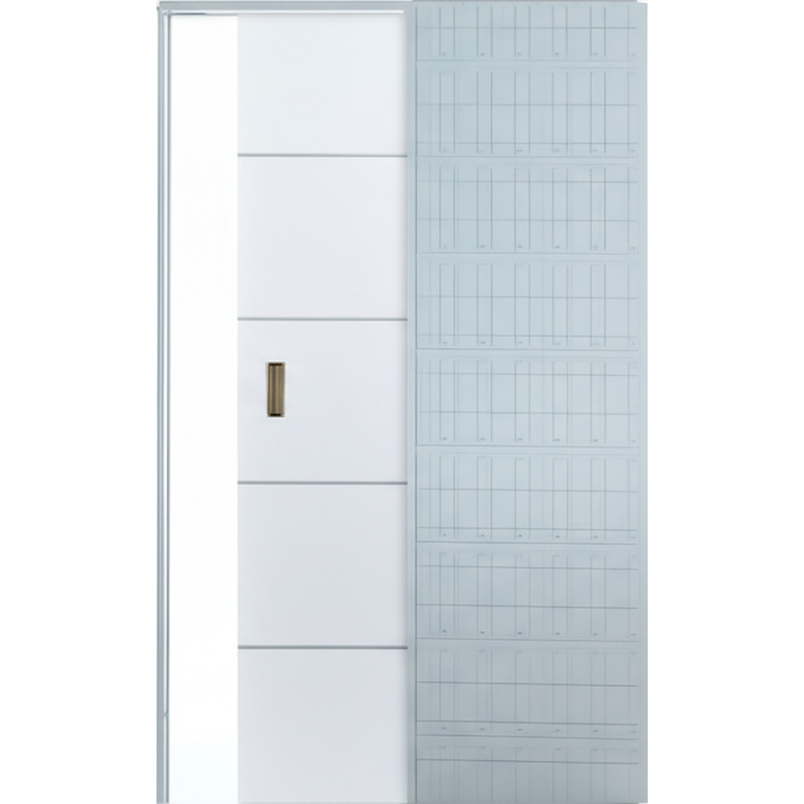 Kitul de glisare incorporat se monteaza in pereti de rigips (grosime minima de perete de 125mm) si este disponibil pentru urmatoarele dimensiuni ale golului de trecere:600/700/800/900x2000mm.