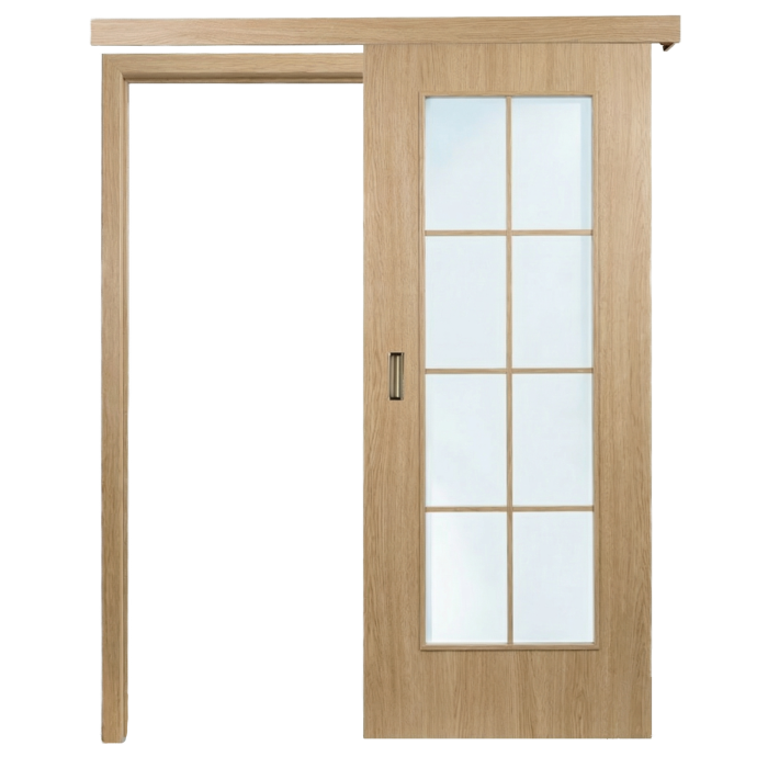Masurati latimea golului de trecere/ de montaj iar mai apoi selectati intervalul in care se incadreaza aceasta si plasati coamnda. Foaia de usa va avea dimensiunea corespunzatoare intervalului selectat.