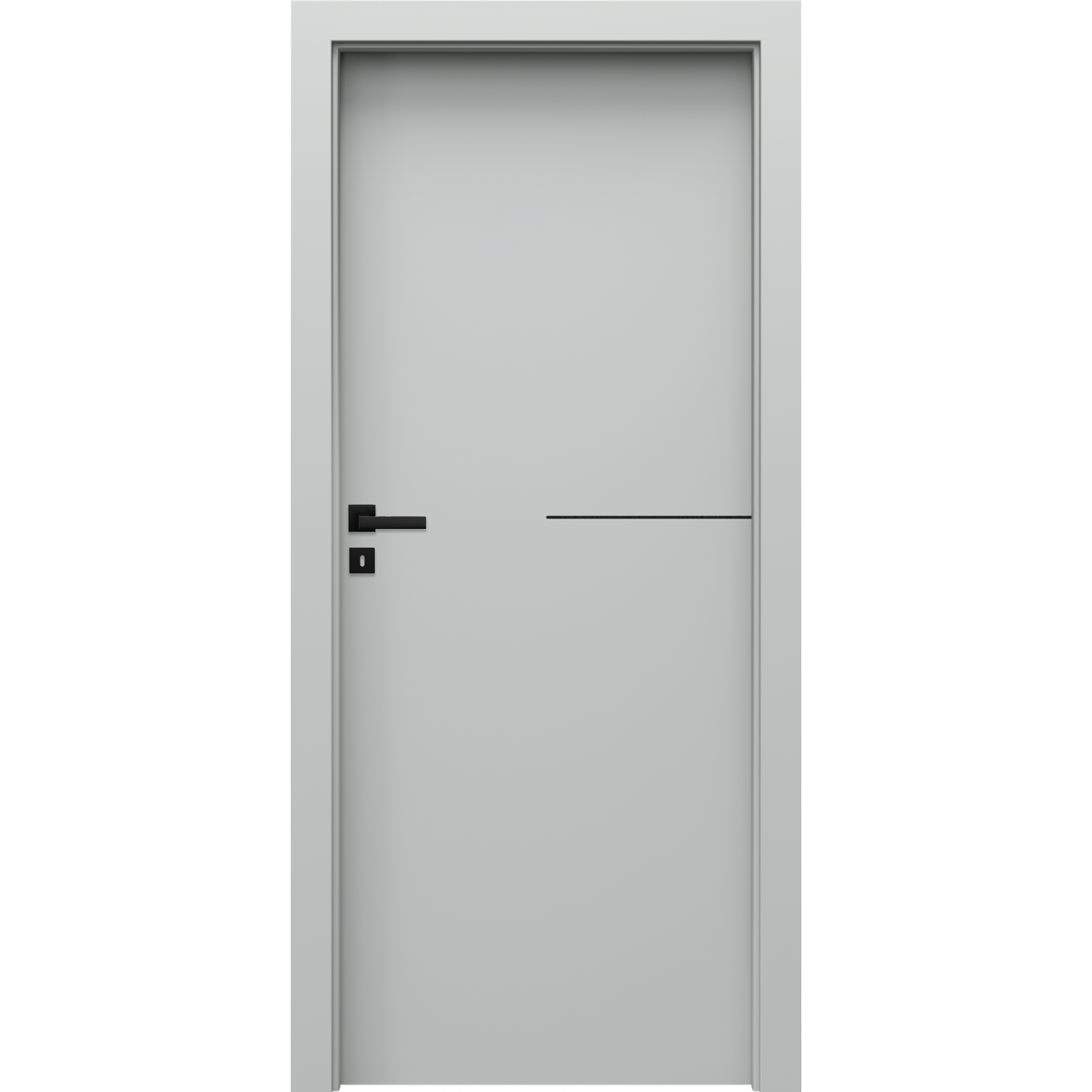 Foile de ușă sunt completate cu inserţii argintii, aurii sau negre, cu o lăţime de 6 mm . Insertiile metalice negre fac un contrast unic si ofera o nota moderna usii de interior integrand-o perfect intr-un desgin de interior, minimalist simplu.