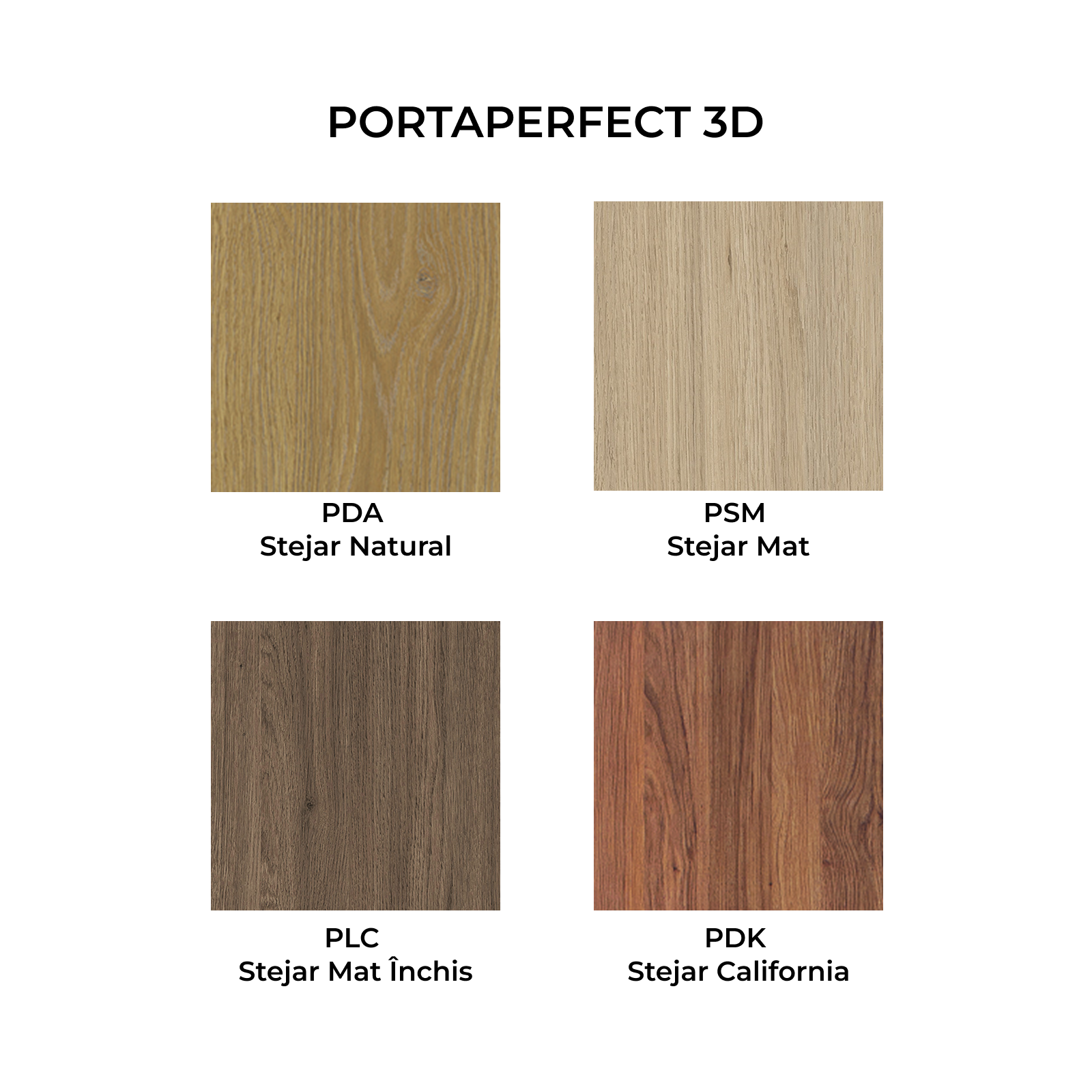 PSM Stejar Mat, PDA Stejar Natural, PDK Stejar California, PLC Stejar Mat Închis