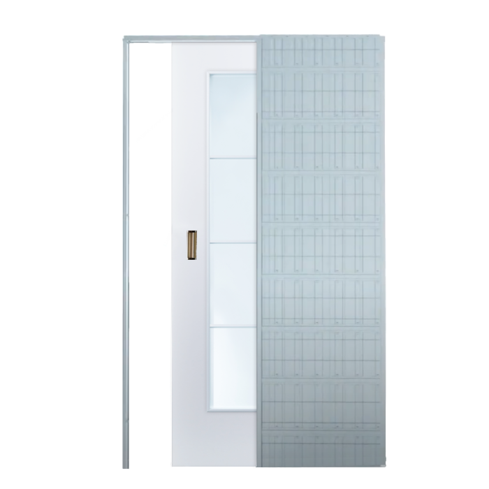Kitul de glisare incorporat se monteaza in pereti de rigips (grosime minima de perete de 125mm) si este disponibil pentru urmatoarele dimensiuni ale golului de trecere:600/700/800/900x2000mm.