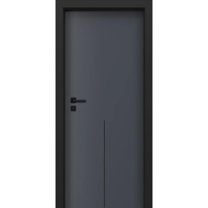 Ușa de interior gri antracit cu toc metalic negru mat reprezinta un element distinctiv și elegant ce aduce o notă moderna oricărui spațiu interior. Cu un design versatil și culori cu note inchise, gri antracit si negru, această ușă se integrează perfect în diverse amenajări interioare ce abordeaza stilul minimalist modern industrial. Fiind echipata cu un toc metalic robust și rezistent cu dimensiunea de 100mm, această ușă este ideală pentru spațiile în care se dorește o soluție durabilă și de încredere.